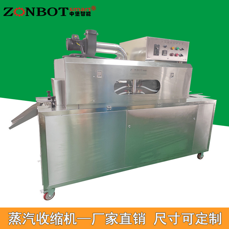 蒸汽收縮機具有以下功能特點: 一、高效收縮功能 快速收縮:能夠在短時間內產生大量蒸汽,使包裝膜迅速收縮貼合產品,大大提高生產效率。 均勻收縮:蒸汽分布均勻,確保包裝膜在產品各個部位都能實現一致的收縮效果,使包裝更加美觀、牢固。 二、廣泛的適用性 適應多種包裝材料:可用于 PVC、POF、PP 等多種常見的熱收縮膜,滿足不同行業的包裝需求。 適用不同產品形狀:無論是規則形狀的產品,如盒子、瓶子等,還是不規則形狀的產品,蒸汽收縮機都能有效地進行包裝。 三、精準的溫度控制 溫度可調節:可以根據不同的包裝材料和產