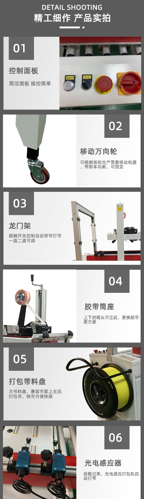 - 精準定位:能夠準確地對紙箱進行定位,確保封箱和打包的位置準確無誤。這使得包裝更加規范、整齊,提高了產品的外觀質量。