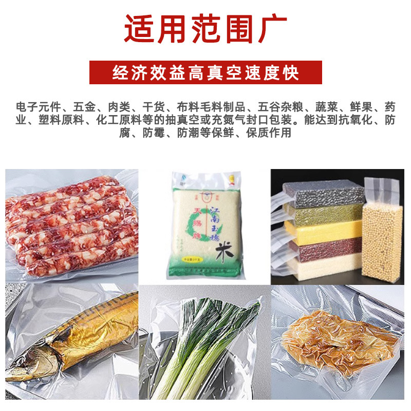 - 食品行業(yè):用于包裝各種食品,如肉類、海鮮、水果、蔬菜等,延長食品的保質(zhì)期,保持食品的新鮮度和口感。