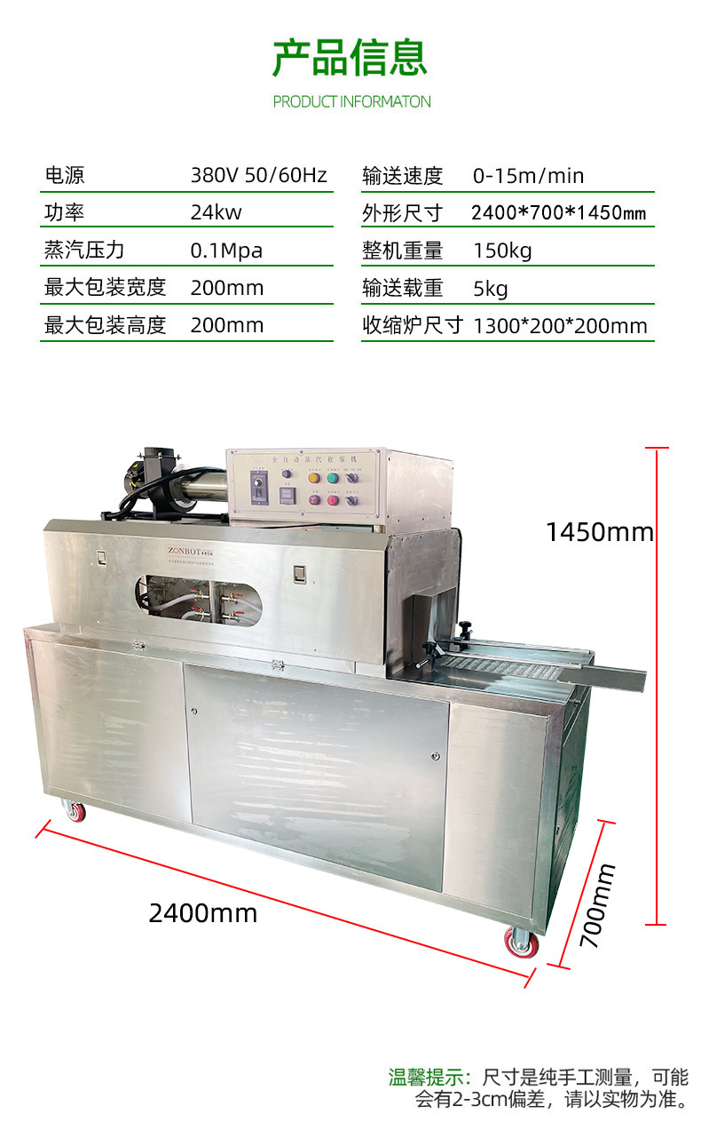 - 功率:不同型號的蒸汽收縮機功率有所不同,一般在一定數值范圍內。