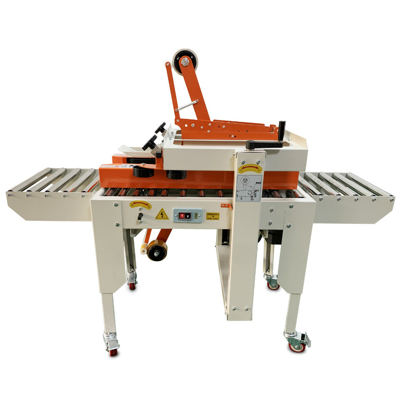 自動封箱機通過傳送裝置將箱子輸送至封箱位置,然后利用膠帶對箱子進行封口。它通常由機芯、導帶輪、膠帶等部件組成。機芯提供動力,帶動膠帶進行封箱操作。