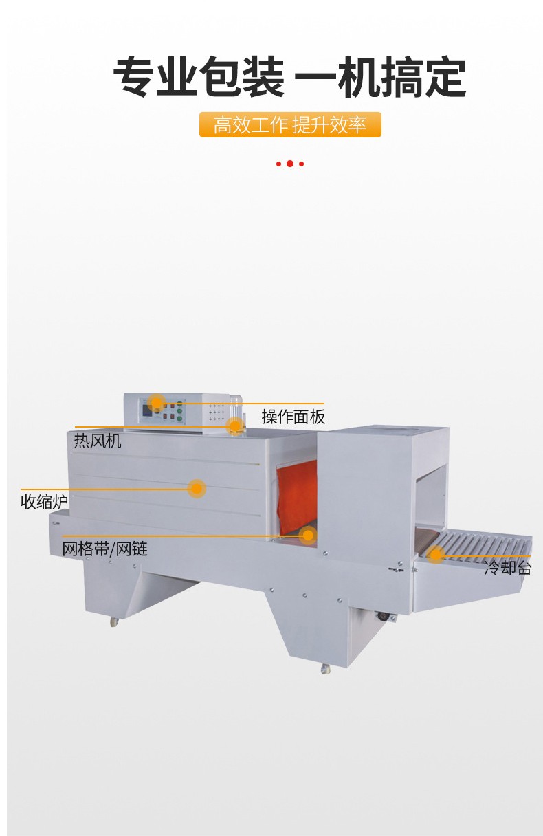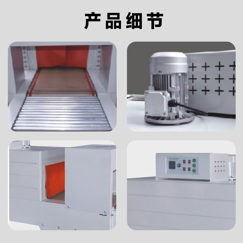 • 輸送速度:輸送速度決定了產(chǎn)品在加熱通道內(nèi)的停留時間,從而影響薄膜的收縮效果。輸送速度一般在 0.5 - 10 米 / 分鐘之間可變。對于大型、復(fù)雜形狀或需要充分收縮的產(chǎn)品,通常會采用較慢的輸送速度,以保證足夠的加熱時間;而對于小型、簡單形狀的產(chǎn)品,可以適當(dāng)提高輸送速度來提高包裝效率。