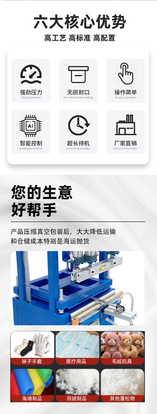 毛巾壓縮包裝機襪子手套毛絨玩具紡織品真空壓縮封口機400真空壓縮封口包裝機