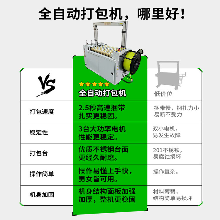MH-301A全自動免扣式打包機電商快遞專用pp帶紙箱捆扎配套封箱機