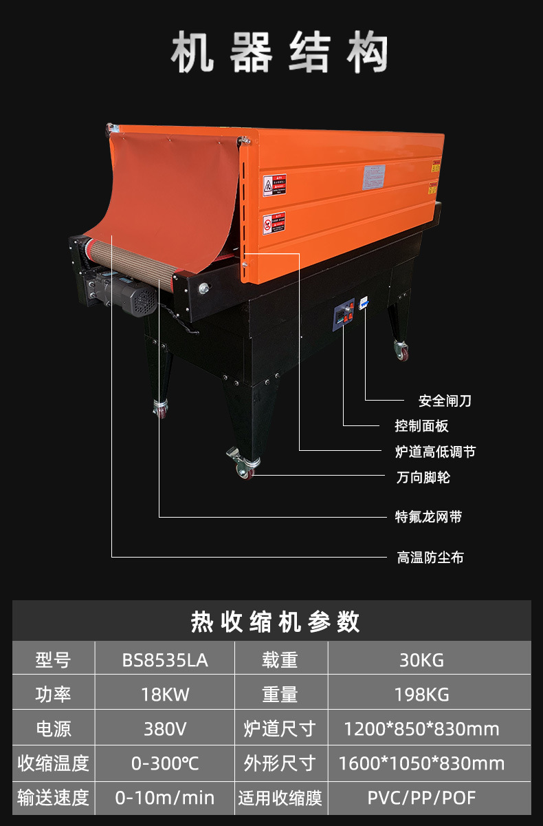 BS4535LA熱收縮機 塑封機噴氣式熱收縮機五金彩盒包裝機過膜機全自動熱收縮包裝機