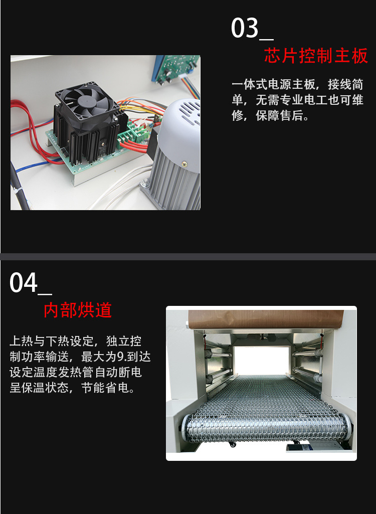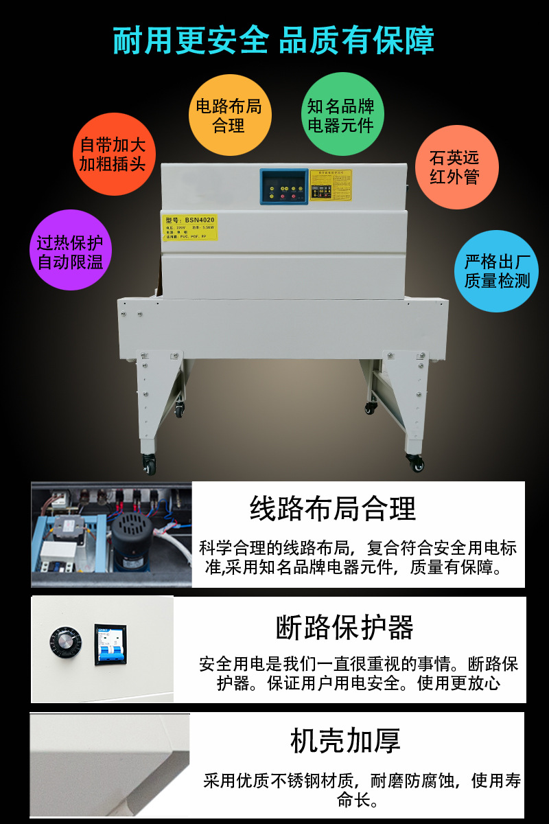 熱收縮機采用的進口材料,保證了產品的質量和性能,使您的產品在收縮包裝后,更耐用、更美觀,更具市場競爭力。
