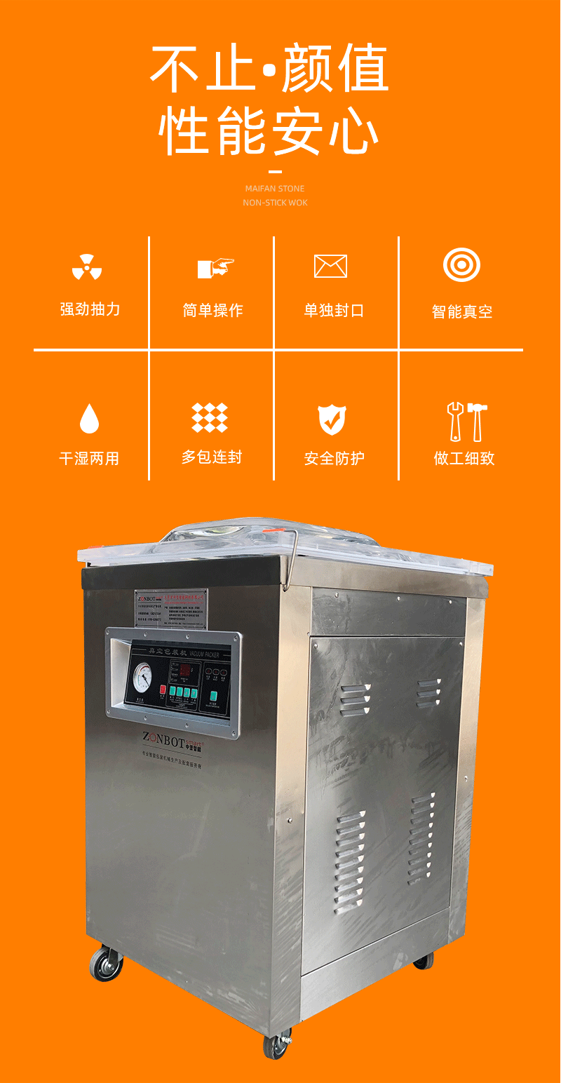 真空包裝機包括食品真空包裝機都是由真空系統、抽充氣密封系統、熱壓封合系統、電器控制系統等組成。外抽式真空包裝機是將包裝袋內抽成低真空后,當即自動封口,由于袋內真空度高,殘留空氣極少,抑制細菌等微生物的繁殖,避免了物品氧化、霉變和
