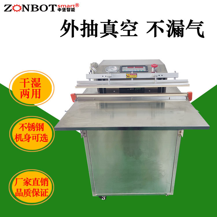 真空包裝機能夠自動抽出包裝袋內的空氣,達到預定真空度后完成封口工序。亦可再充入氮氣或其它混合氣體,然后完成封口工序。真空包裝機常被用于食品行業,因為經過真空包裝以后,食品能夠抗氧化,從而達到長期保存的目的。
