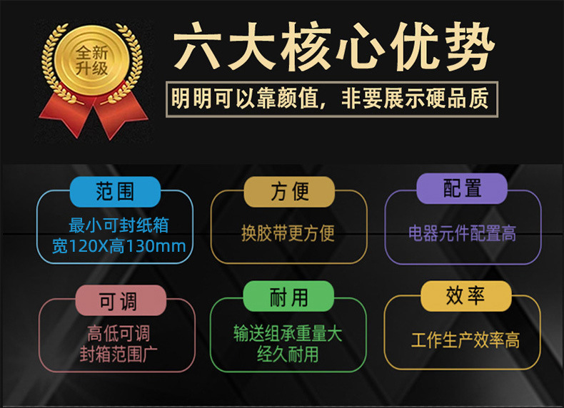 作為一款優(yōu)質(zhì)的封箱機,其耐用性也是我們非常關(guān)注的一點。這款封箱機采用了高品質(zhì)的進口材料和零件,經(jīng)久耐用,減少您的維修成本和停機時間。同時,其結(jié)構(gòu)緊湊,占地面積小,方便您在狹小的空間中使用。