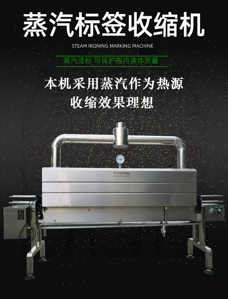 蒸汽式熱收縮機可以根據不同的生產速度來調節設備功率的大小,輸送帶采用無級調速,輸送速度可以任意調節。廣泛應用于大桶或小瓶裝礦泉水、純凈水;汽水和茶飲料等食品飲料行業,以及化妝品、洗發水和五