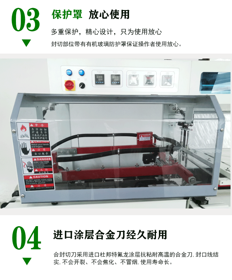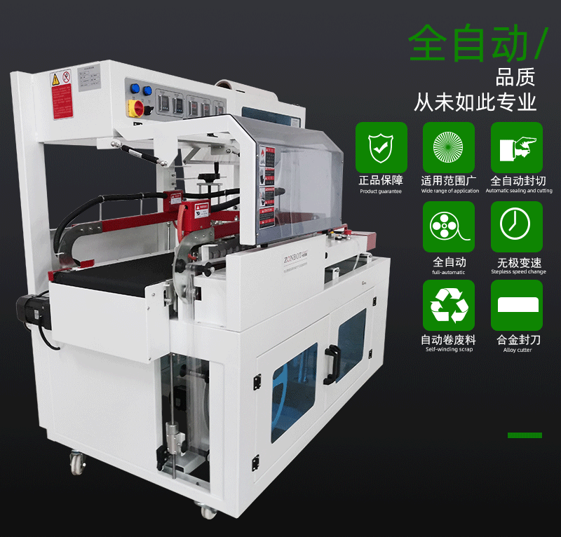 封切機是全自動無人化操作的包裝機,廣泛用于批量生產包裝的流水作業,工作效率高,自動送膜打孔,自動套膜封切,自動卷取廢料;只需手動調節導膜系統以及手動調節進料輸送平臺,適用不同寬度及高度的產品。