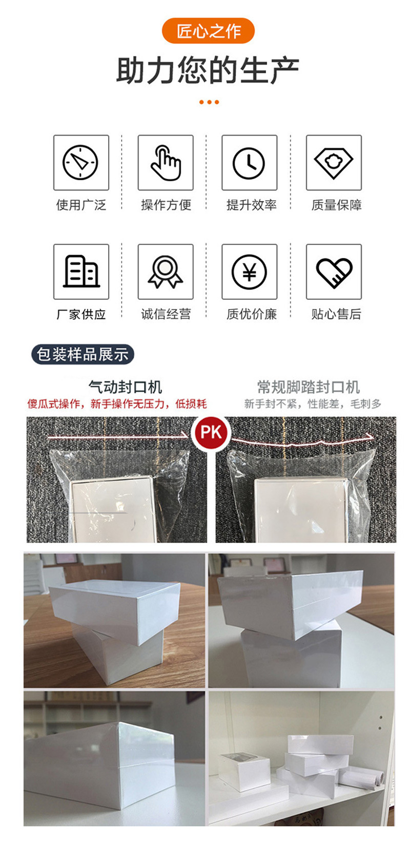 氣動封口機(jī)是一種新穎的氣電一體化包裝機(jī)械,是柔軟物質(zhì)、儲存、產(chǎn)品防潮運輸領(lǐng)域中不可缺少的必要手段