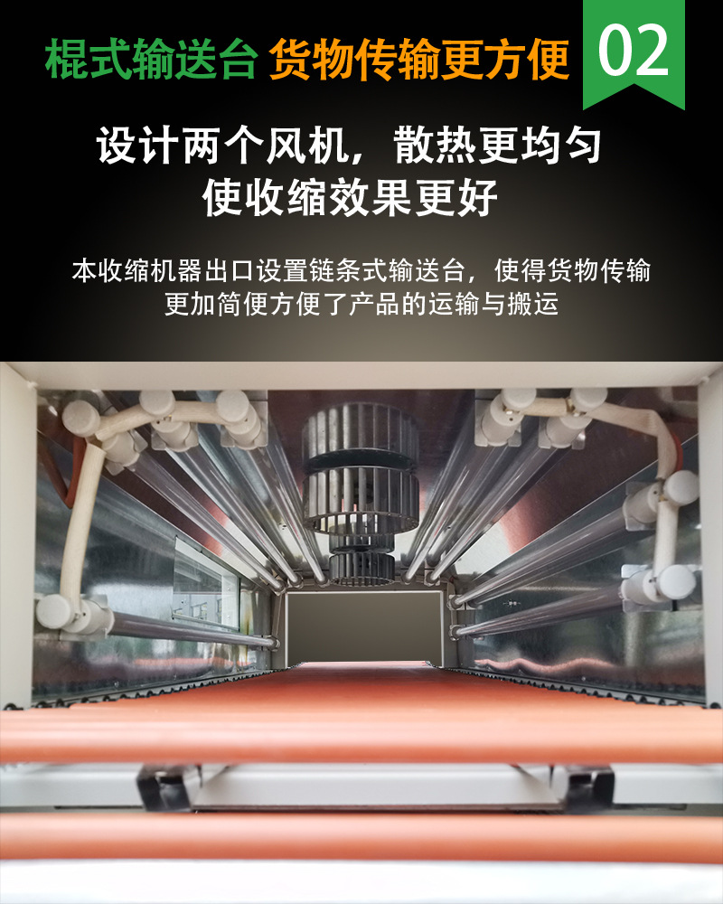 熱收縮機通過采用收縮膜包裹在產(chǎn)品或包裝件外面,?然后加熱使材料收縮裹緊產(chǎn)品或包裝件,?從而充分顯示物品的外觀,?提高產(chǎn)品的展銷性,?增加美觀及價值感。?這種包裝方式不僅能密封產(chǎn)品,?還能有效防潮、?防污染,?保護商品免受來自外部的沖擊,?具有一定的緩沖性。?特別是當包裝易碎品時,?能有效防止器皿破碎時飛散,?同時也能減低產(chǎn)品被拆、?被竊的可能性。?