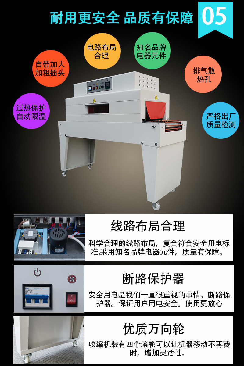 熱收縮機的主要功能包括密封、?防潮、?防污染,?并保護物品免受外部沖擊。?